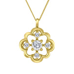 Inspired by movement and balance, The Navi pendant centers a radiant lab-grown diamond surrounded by four directional accent stones—framed by sweeping 10K gold curves. Like petals opening or waves in motion, the design feels soft, intentional, and full of quiet energy.