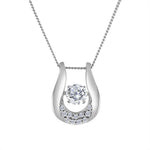 A polished 10K white gold horseshoe curves softly around a brilliant, dancing lab-grown diamond, suspended to catch the light with every move. A row of pavé-set accent diamonds adds just the right amount of sparkle. A fresh take on a classic silhouette, this piece is all about modern elegance with a hint of charm.