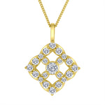 Delicate curves unfold around a central lab-grown diamond, echoing the quiet bloom of a lotus in motion. Set in polished 10K yellow gold with subtle accent stones, the Solis Pendant captures light and attention with understated elegance. A symbol of renewal, clarity, and calm strength—made to shine solo or layered effortlessly.