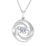 A round lab-grown diamond shimmers with every breath and heartbeat — delicately suspended in a dancing setting that moves with you. Framed by two sculptural waves of high-polish white gold, this pendant captures motion, fluidity, and light in perfect harmony.