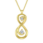 Two lab-grown diamonds are woven into an infinity silhouette—symbolizing balance, connection, and modern elegance. Crafted in 10K yellow gold with a soft high-polish finish, this pendant delivers just the right amount of shine for everyday wear or layered statements. A thoughtful take on timeless form.