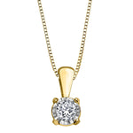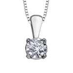 The Classic Diamond Solitaire Pendant is available in White Gold or Yellow Gold.