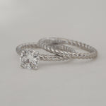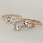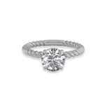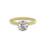 Lennon embodies the perfect balance of modern and classic with its high-polish braided gold band. This striking detail adds a touch of contemporary flair and a captivating rope texture, creating a one-of-a-kind solitaire design. It's the perfect symbol of a unique and timeless love story.