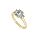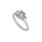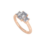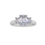 Millie, an exquisite three-stone engagement ring, is a timeless symbol of your love story. The elegant emerald-cut center diamond, accented by two sparkling emerald-cut side stones, represents your past, present, and future together. A beautiful reminder of your journey.