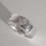 Are you searching for a ring that will hold sentimental value for years to come? Look no further! This exquisite handmade piece showcases 18 stunning pavé diamonds, elegantly set into a classic heart shape that will surely capture your heart.