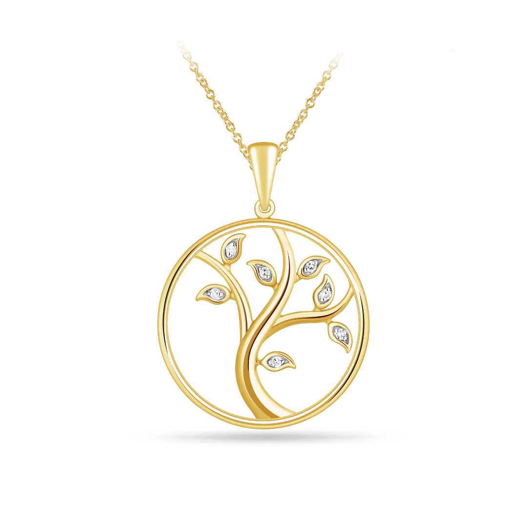 The Diamond Tree of Life Pendant is available in Yellow Gold.