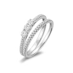 This exquisite set features a breathtaking Three Stone Diamond Engagement Ring paired with a matching diamond band, creating a stunning and timeless piece for your special day. It is available in Yellow or White Gold.