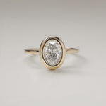Discover the perfect blend of modern and classic with our East-West Oval Lab Diamond Bezel Solitaire Ring. The 1.50ct oval lab diamond is set in a sleek and stylish bezel, creating a timeless look that will never go out of style.