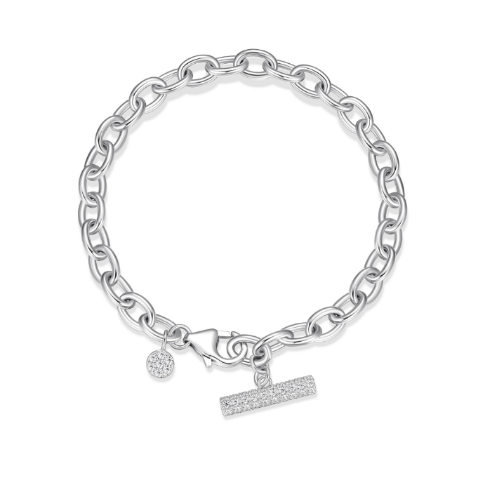 From the PAJ-Bridal Collection. Elegant rhodium-plated sterling silver bracelet with cubic zirconia accents for brilliant sparkle.