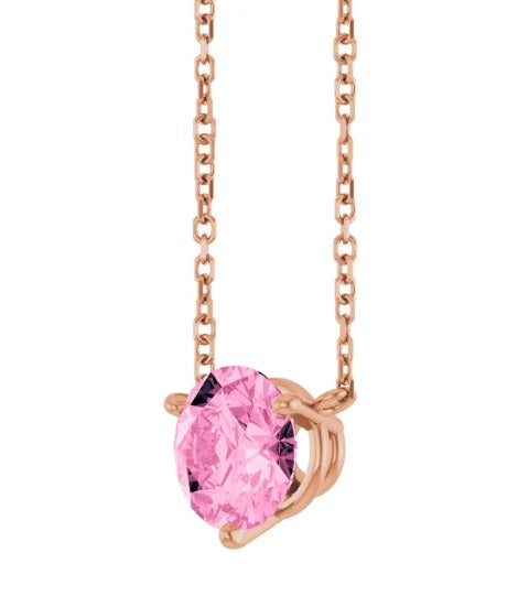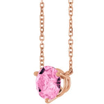 This Pink Sapphire Solitaire Stationary Necklace is available in Rose Gold.